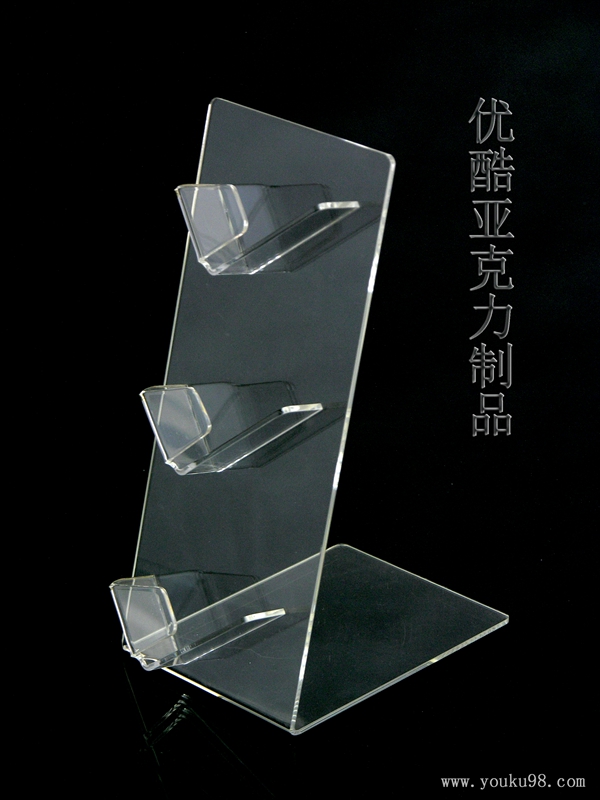 亞克力手機展示架是一種利用亞克力板加工而成的展示架,主要用于酒店、商場、店鋪等展示商品而用。亞克力手機展示架是大家常見的一種亞克力展示架,通用來展示手機的展示架。亞克力手機展示架具有高頭型,高達百分之九十二以上。亞克力手機展示架的透明度:進口亞克力是嚴格的原料配選、先進的配方跟現代生產工藝制作,確保板材的透光度和純白度,激光拋光后晶瑩剔透。進口亞克力無色透明,透明度95%以上,無黃色反光;亞克力手機展示架的硬度:硬度是最能體現澆注亞克力生產工藝和技術的參數之一,是品質臨控制中重要一環。硬度反映出原料的MMA純度、板材耐侯性以及高濫用性等。硬度直接影響到板材是否收縮彎曲變形。加工時表面是否會出現龜裂等情況,是評判亞克力板品質好壞硬性標志之一。平均達洛氏度值89度左右。二戰期間因亞克力具有優異的強韌性及透光性,首先,被應用于飛機的擋風玻璃,坦克司機駕駛室的視野鏡;亞克力手機展示架光澤度:進口原料,光澤柔和、反光效果好,搭配賣場燈光,品質高雅;亞克力手機展示架的厚度公差:厚度公差的控制室品質管理和生產技術的重要體現,進口料澆注亞克力板的厚薄公差控制在+-0.2mm以內;無毒環保:無毒環保材料,魚人體接觸無害,燃燒時不會含有有毒成分氣體。