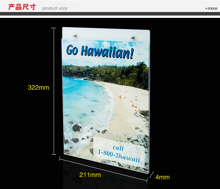 A4掛墻有機玻璃制品廣告展示夾 餐廳 菜單牌 門牌 豎47001-R